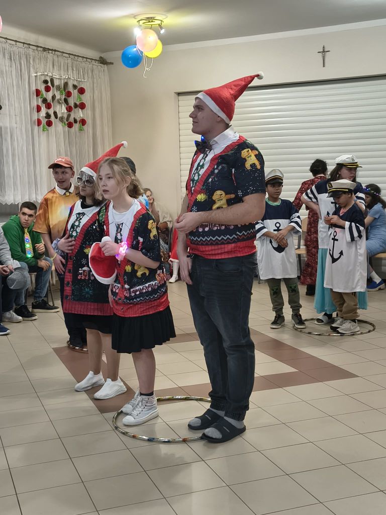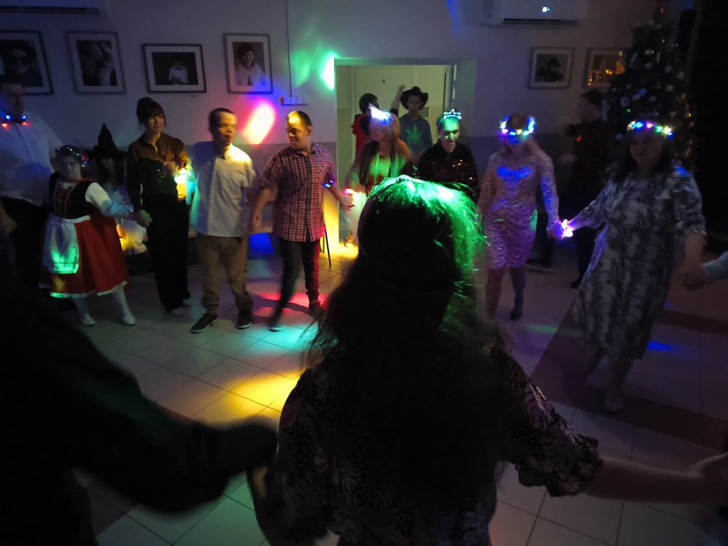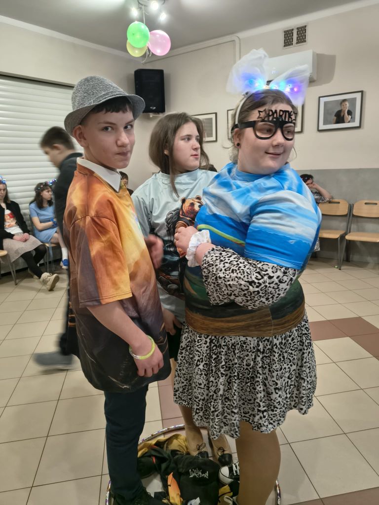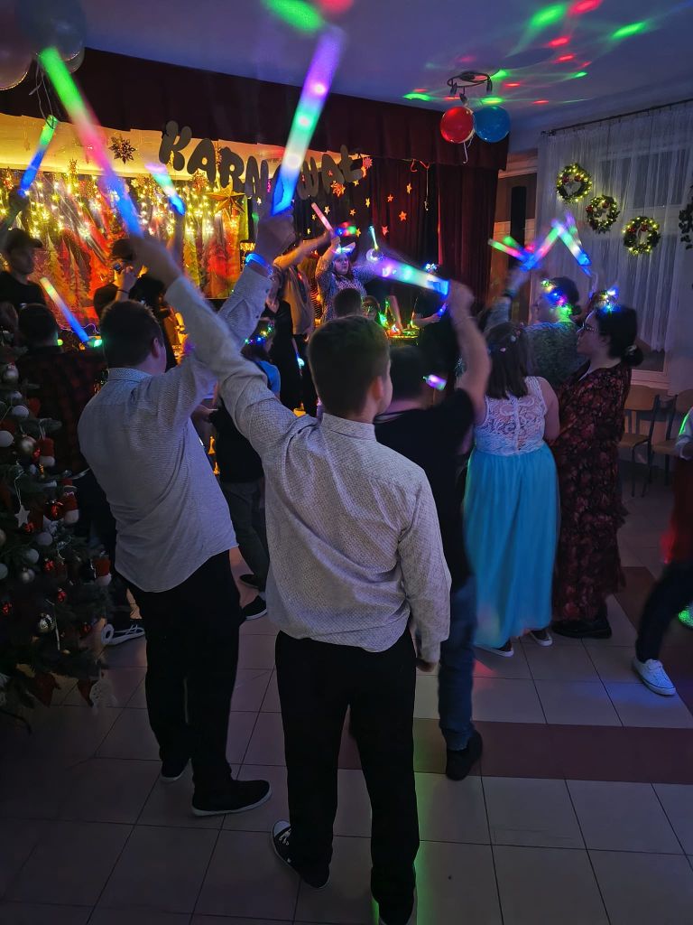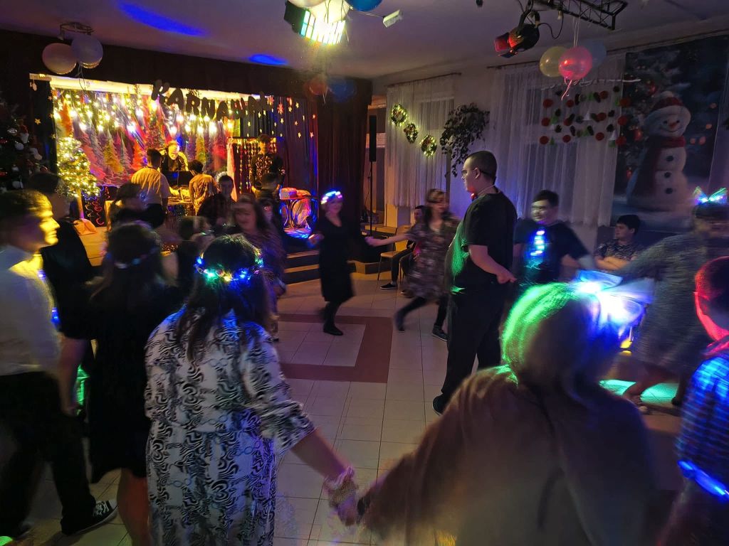 We wtorek 27.01.2026r. odbyła się zabawa karnawałowa. Były tańce do późnych godzin wieczornych. O oprawę muzyczną zadbał nasz niezawodny DJ Piotr (nauczyciel-wychowawca), który miksował muzyczne kawałki i zagrzewał wszystkich do tańca na parkiecie. Oprócz dobrej muzyki, było dużo kolorowego światła, bo wychowankowie otrzymali barwne, świecące gadżety (bransoletki, opaski, krawaty, itd.). Największym zaskoczeniem był jednak świetlny, kolorowy motyl. Wcieliła się w niego p. Marysia, która swojego przebrania użyczała chętnym wychowankom. Taniec i śpiew potrafią zmęczyć więc nie zabrakło przerwy na małą pączkową przekąskę. Przecież tłusty czwartek tuż, tuż 😊. Wytchnieniem dla bolących od tańca nóg, był także konkurs sprawnościowy. Zwycięzcami byli wszyscy, bo każdy dobrze się bawił, „Tak się bawi, tak się bawi… Internat!”.